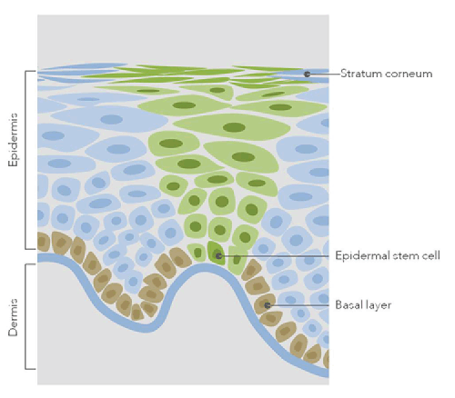 Alors que l'épiderme de la jeune peau se régénère entièrement en l'espace d'environ quatre semaines, ce processus ralentit de plus en plus avec l'âge. D'un côté, le nombre de cellules souches épidermiques diminue et de l'autre, leur efficacité s'amoindrit. Une exposition excessive de la peau aux rayons UV et de mauvaises habitudes de vie (tabac, alcool) renforcent nettement ces effets. En conséquence, la peau s'amincit et se ride, le film hydrolipidique s'affine, ce qui rend la peau plus sèche et plus fragile. Comme, au cours de la vie, aucune cellule souche épidermique nouvelle ne se crée, il est d'autant plus important de maintenir le plus longtemps possible la vitalité et la capacité de division de ces précieuses cellules épidermiques.